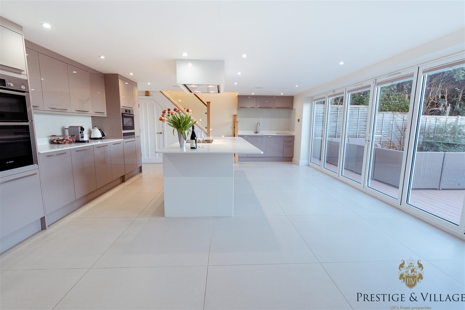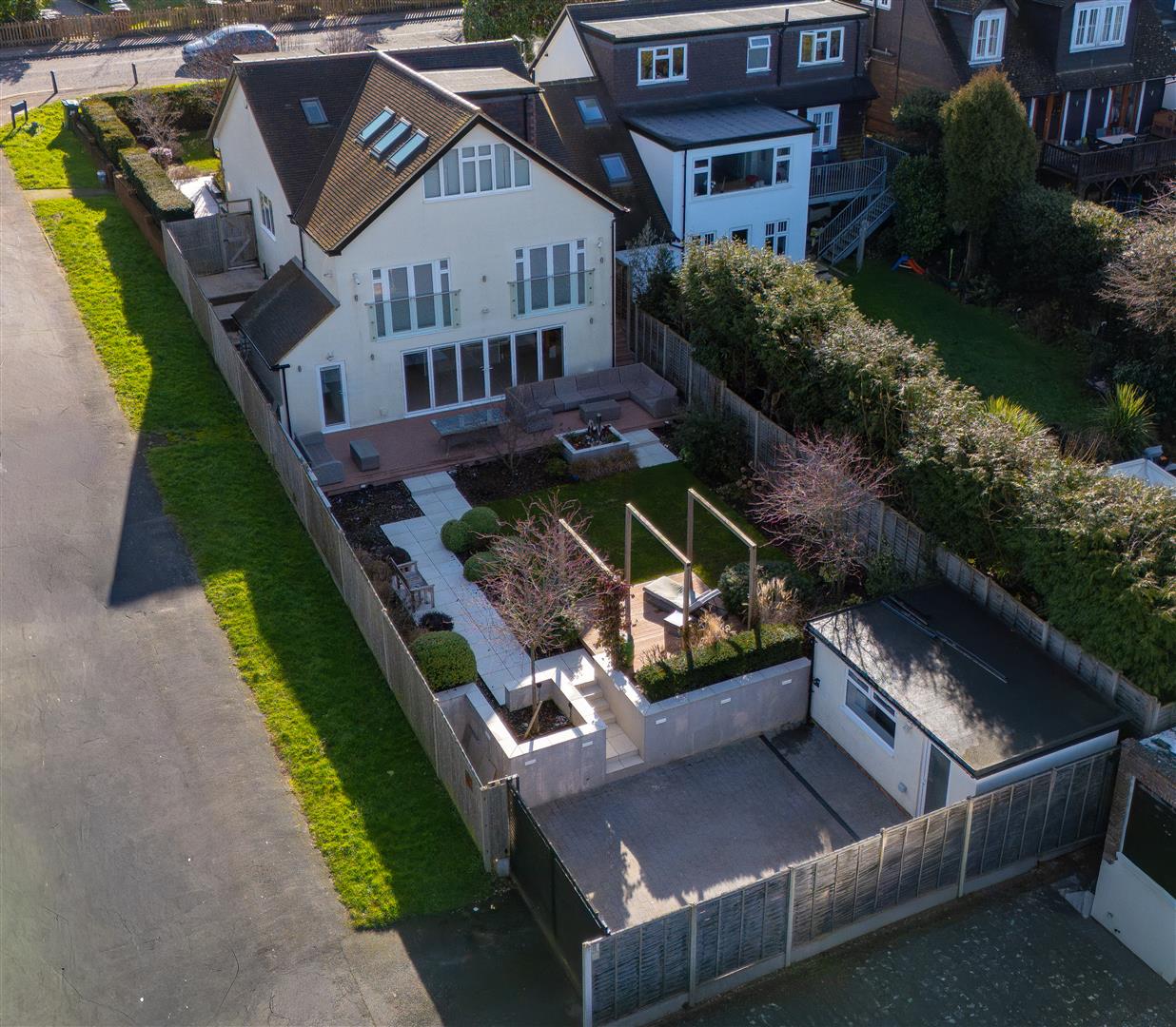 An exceptional detached home enjoying an elevated position on the highly regarded Caldecote Gardens, with far-reaching views across Bushey towards open countryside. Beautifully remodelled and finished to a high standard throughout, the property offers flexible 5 bedroom accommodation, elegant reception space and a stunning open-plan kitchen/breakfast room, complemented by landscaped gardens and secure gated off-street parking.