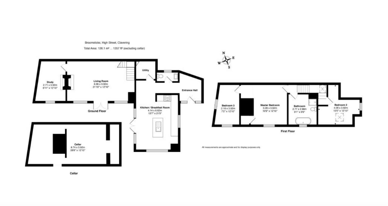 A thoughtfully refurbished and extended three bedroom detached Grade II period cottage that is believed to date back to 1710. Broomsticks has undergone an extensive refurbished programme in recent years and has been extended to an extremely high standard. The property now features a new 22′ vaulted kitchen/family room which forms the heart of this beautiful home. Centrally located within the sought after village of Clavering. The village itself offers a well regarded Primary school, supermarket and a choice of Public houses. Within a short drive of the larger market town’s of Saffron Walden to the north and Bishops Stortford to the south. Being within a 10 minute drive of Audley End station which offers a fast commute to both Cambridge and London Liverpool Street station. Accommodation comprises: Entrance hall, cloakroom, utility room, vaulted kitchen/family room, sitting room plus a second reception room which could be a study/games room/snug. On the first floor: Master bedroom, plus two further bedrooms and family bathroom. Benefiting from gas fired central heating to radiators throughout and oak flooring to the ground floor. Outside: Part walled garden which is south facing, EPC exempt.