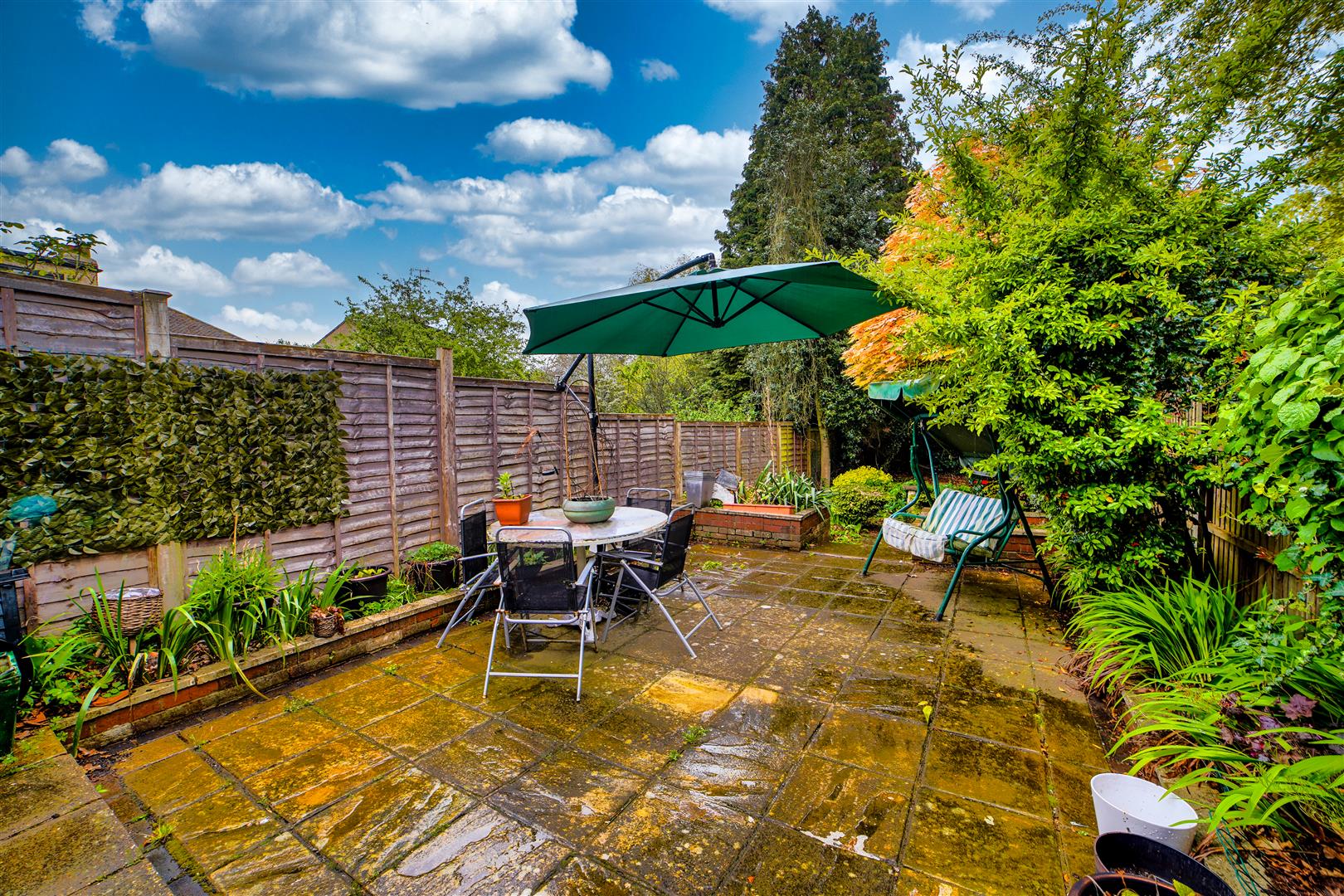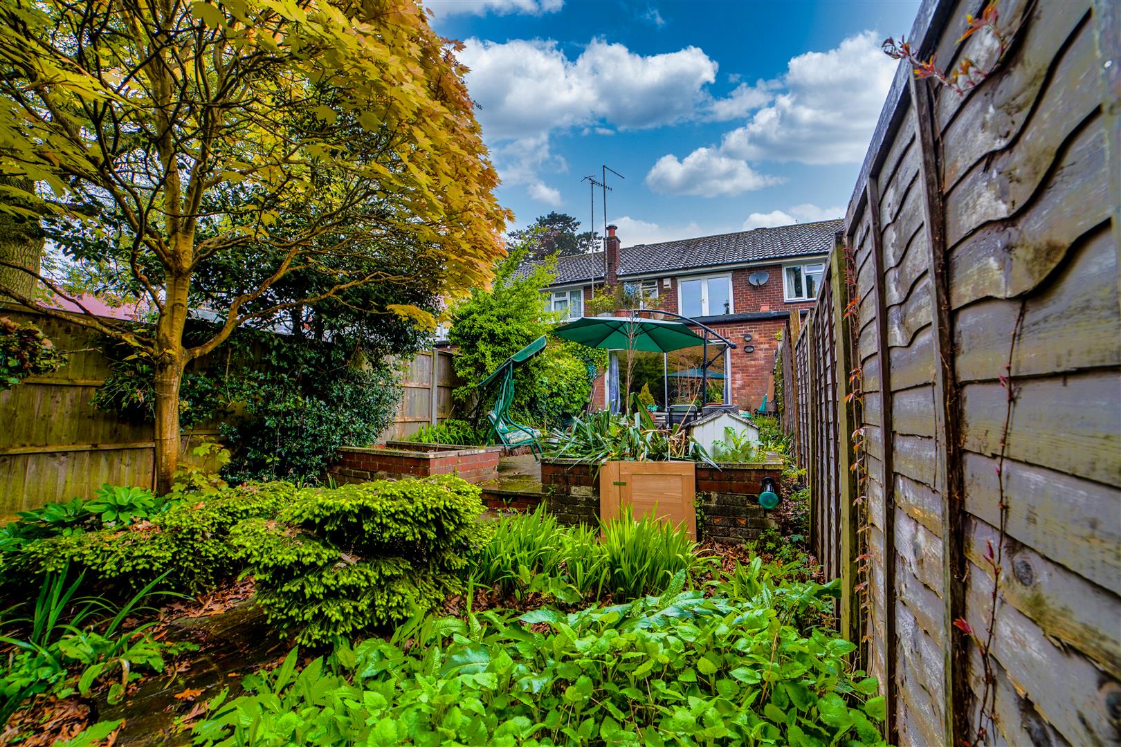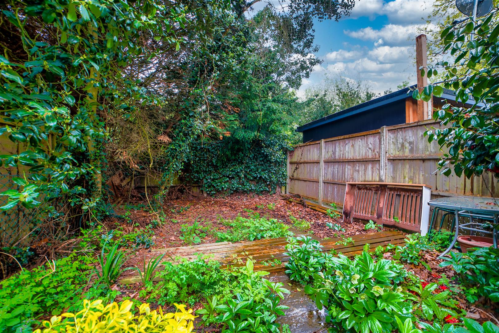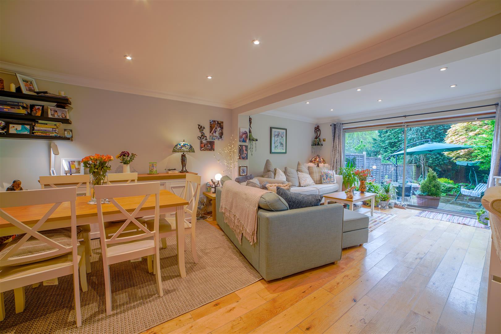 The open-plan living and dining area creates a seamless flow, perfect for entertaining guests or enjoying everyday living. The generously sized patio doors allow plenty of natural light to fill the space, creating a warm and welcoming atmosphere. Step through the doors and you’ll find yourself in the enchanting garden, which provides a perfect integration between indoor and outdoor living. The garden, of a pleasing size, features a lovely patio area that’s perfect for relaxation and dining.