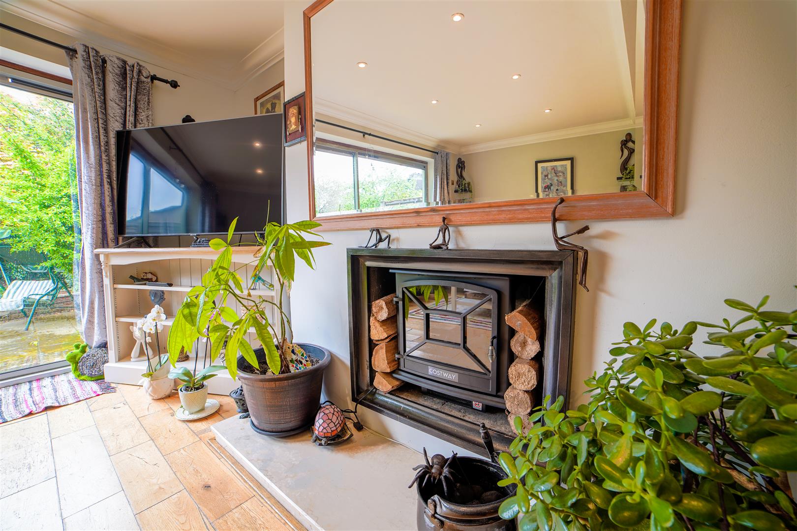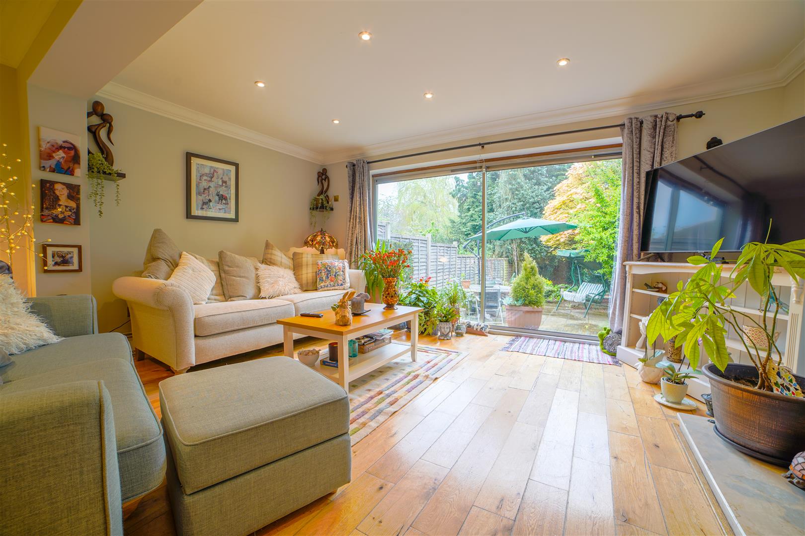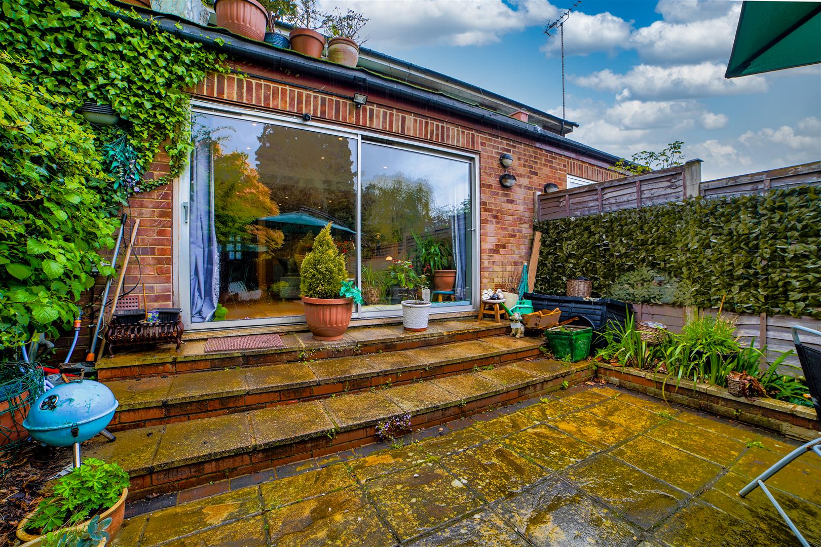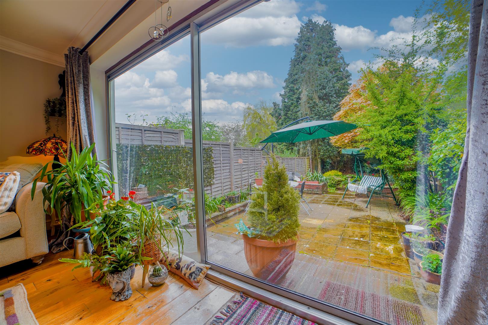 The open-plan living and dining area creates a seamless flow, perfect for entertaining guests or enjoying everyday living. The generously sized patio doors allow plenty of natural light to fill the space, creating a warm and welcoming atmosphere. Step through the doors and you’ll find yourself in the enchanting garden, which provides a perfect integration between indoor and outdoor living. The garden, of a pleasing size, features a lovely patio area that’s perfect for relaxation and dining.